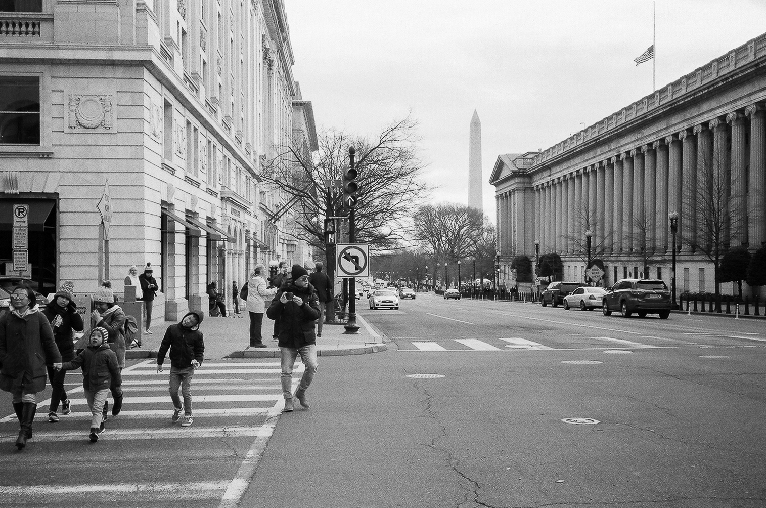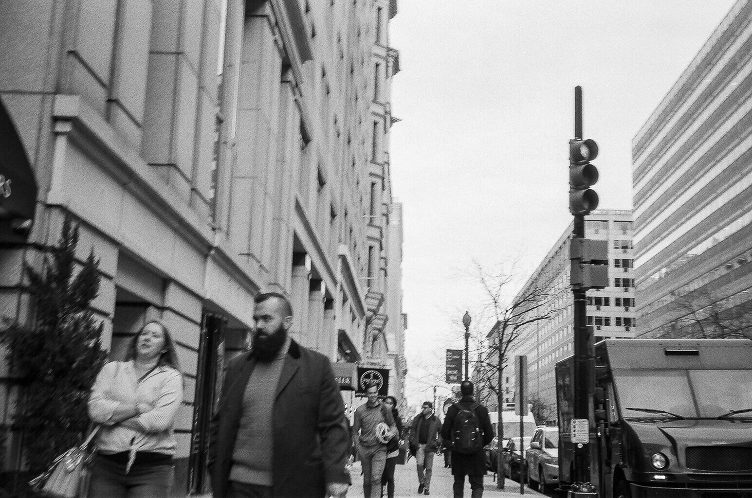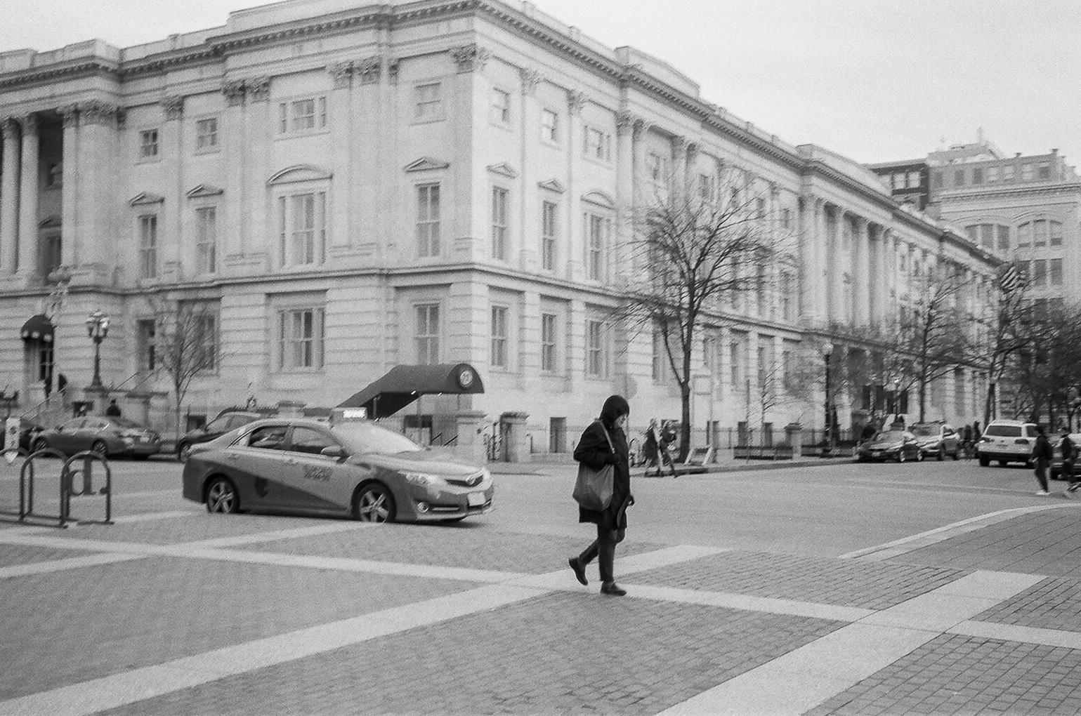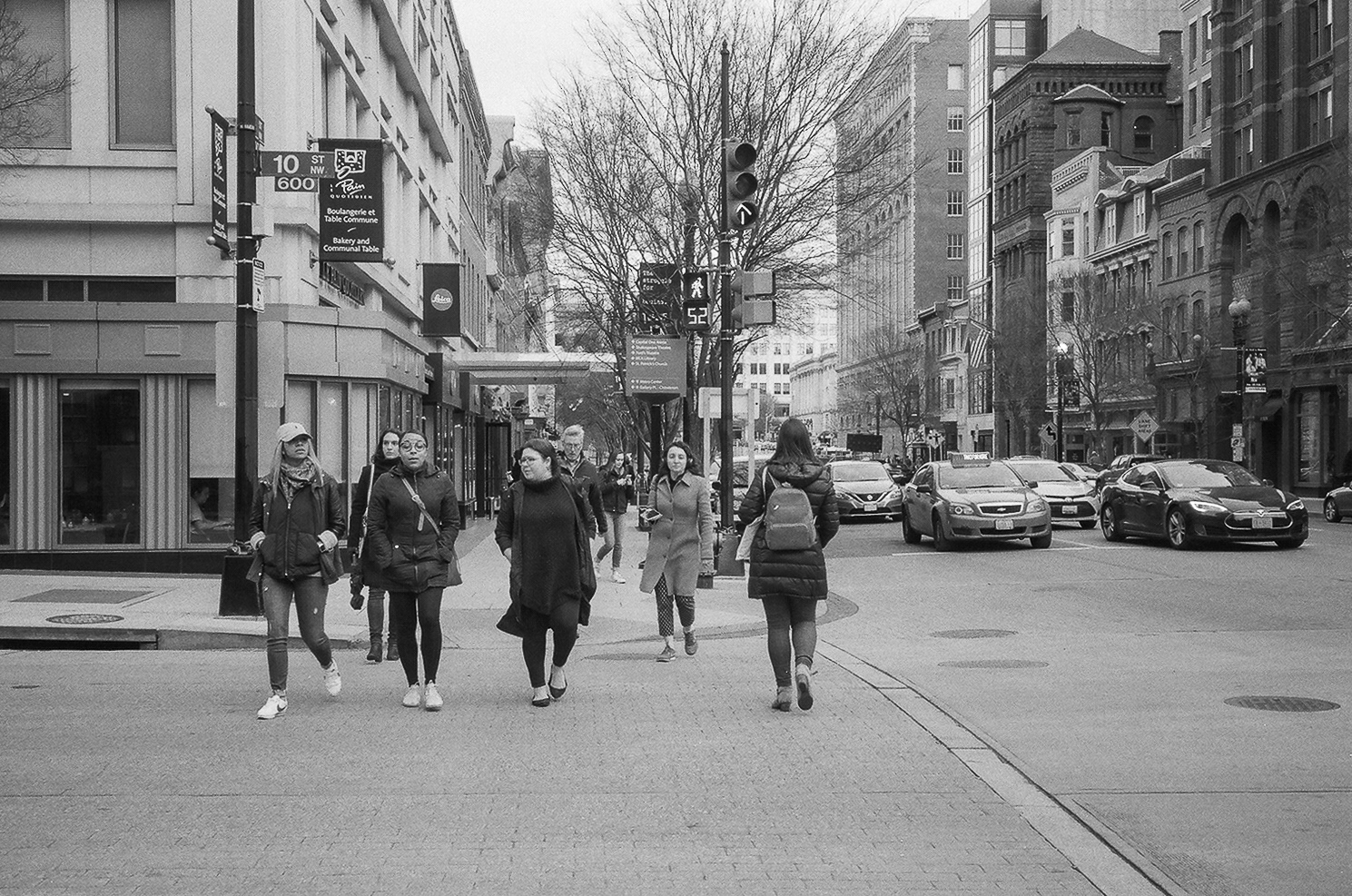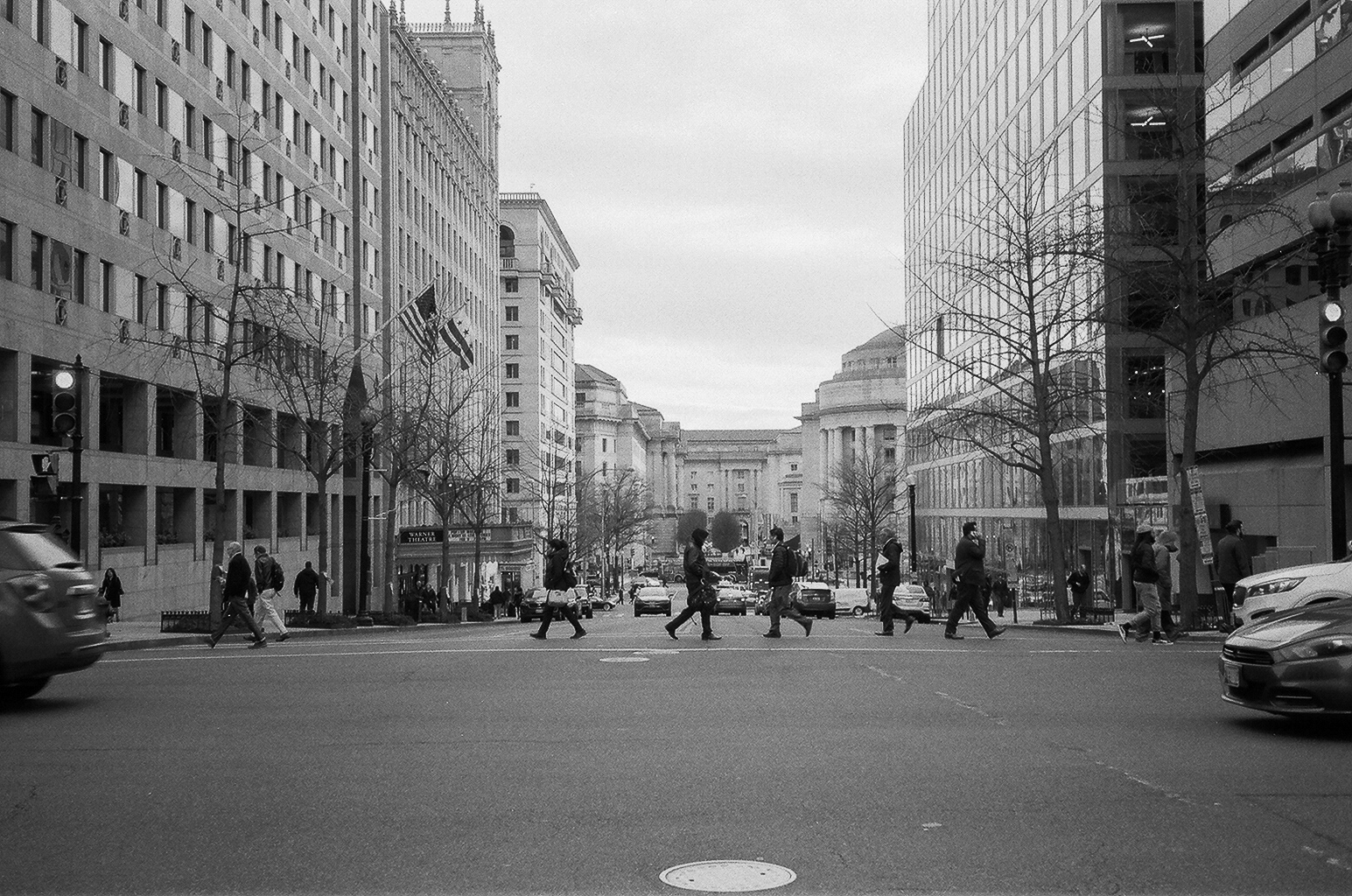 I walked along F St. in downtown Washington D.C., starting from Lafayette Square and ending around Gallery Place. The following images were captured with an Olympus 35 RC and Kentmere 400.