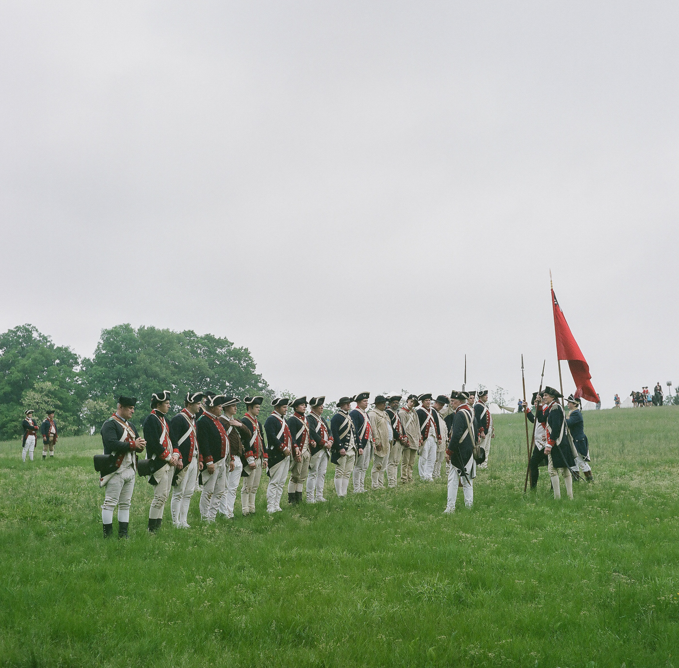 Mount Vernon's serene 12-acre field transforms into a battleground as hundreds of Continentals, Redcoats, and Hessians conduct military drills, perform cavalry demonstrations, and engage in 18th-century battle reenactments. Last year, during the Revolutionary War Weekend celebrated at George Washington's Mount Vernon I captured the following images with a Rolleiflex 3.5f and FujiFilm PRO 400H.